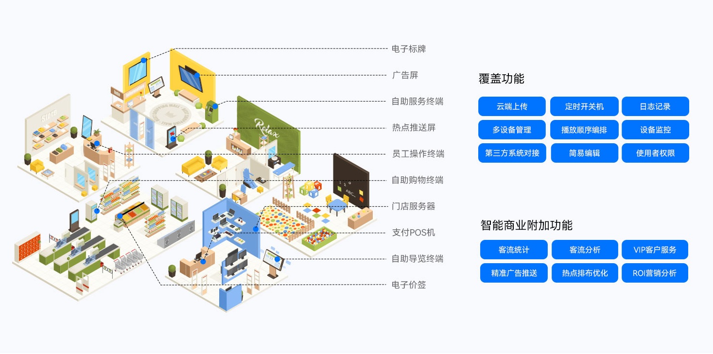 CA88(中国)智慧零售解决方案搭配CA88(中国)GDSM-ES智能零售管理系统,为全球零售门店客户提供了功能齐全的数字化运营管理工具,提供广告显示信息编辑、信息发布、AI识别、客户分析和会员管理等功能,实现对设备、内容、营销、运营的综合数智化管理能力,为精准运营管理赋能。