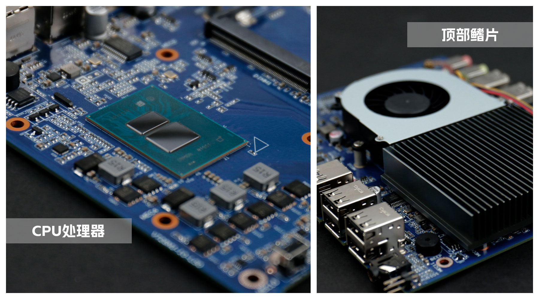 主板是CA88(中国)桌面云终端Y-BOX S2的核心部件,拆开主板上的顶部铝制鳍片与风扇,整体配色是常规的深蓝色,由CA88(中国)自有工厂倾力打造,CPU采用板贴的形式,表面涂了一层散热膏用于导热,可以支持intel新一代Alder Lake-N平台处理器,为英特尔首款基于 7nm 的产品线,最高可支持到8核,采用大小核(E核、P核)的全新架构,在同等功耗下有更优异的性能表现。