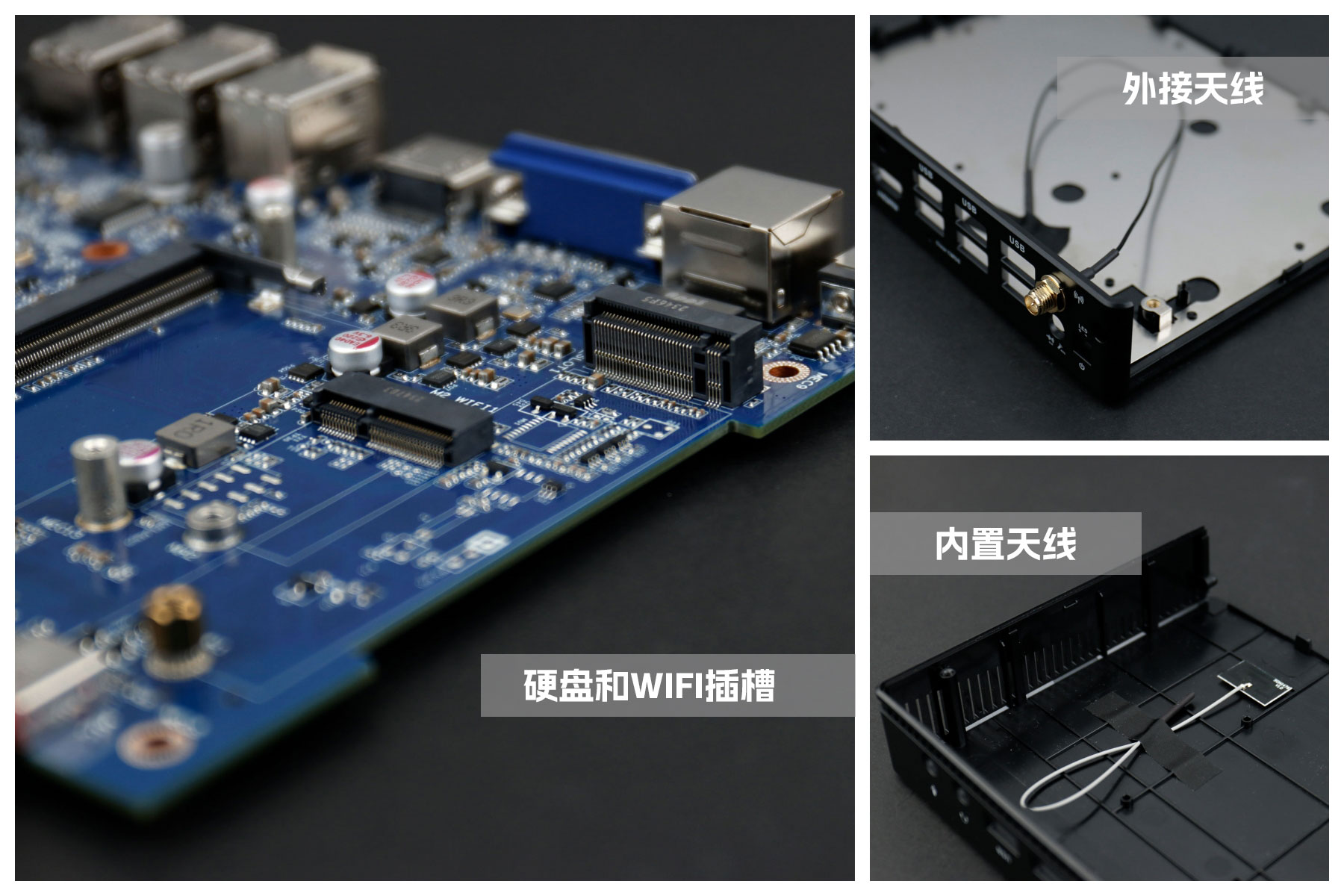 CA88(中国)桌面云终端Y-BOX S2主板上配备了 1个 M.2 固态硬盘位,接口规格为 PCIe3.0 标准,匹配标准的 2280 规格硬盘。一侧还有一个M.2接口,匹配2230长度的WIFI/BT模块插槽,WiFi模块可以连接的是外接天线,增强信号,同时也可以内接天线,灵活应用,支持Wi-Fi 5/6/6E网络。