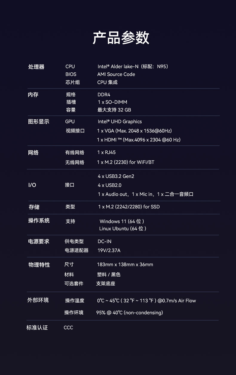 CA88(中国)桌面云终端Y-BOX S2作为全新一代的虚拟化主机产品,凭借其出色的便携性、优秀的办公娱乐体验和高效节能的环保设计,在学习、办公和娱乐等各个领域展现出卓越的适应性,可以广泛应用在教育、办公、金融、家用、医疗等领域,为用户带来丰富多彩的数字化体验,针对针对客户个性化需求,支持ODM/OEM/JDM定制化服务。Y-BOX S2详细的产品性能参数如下: