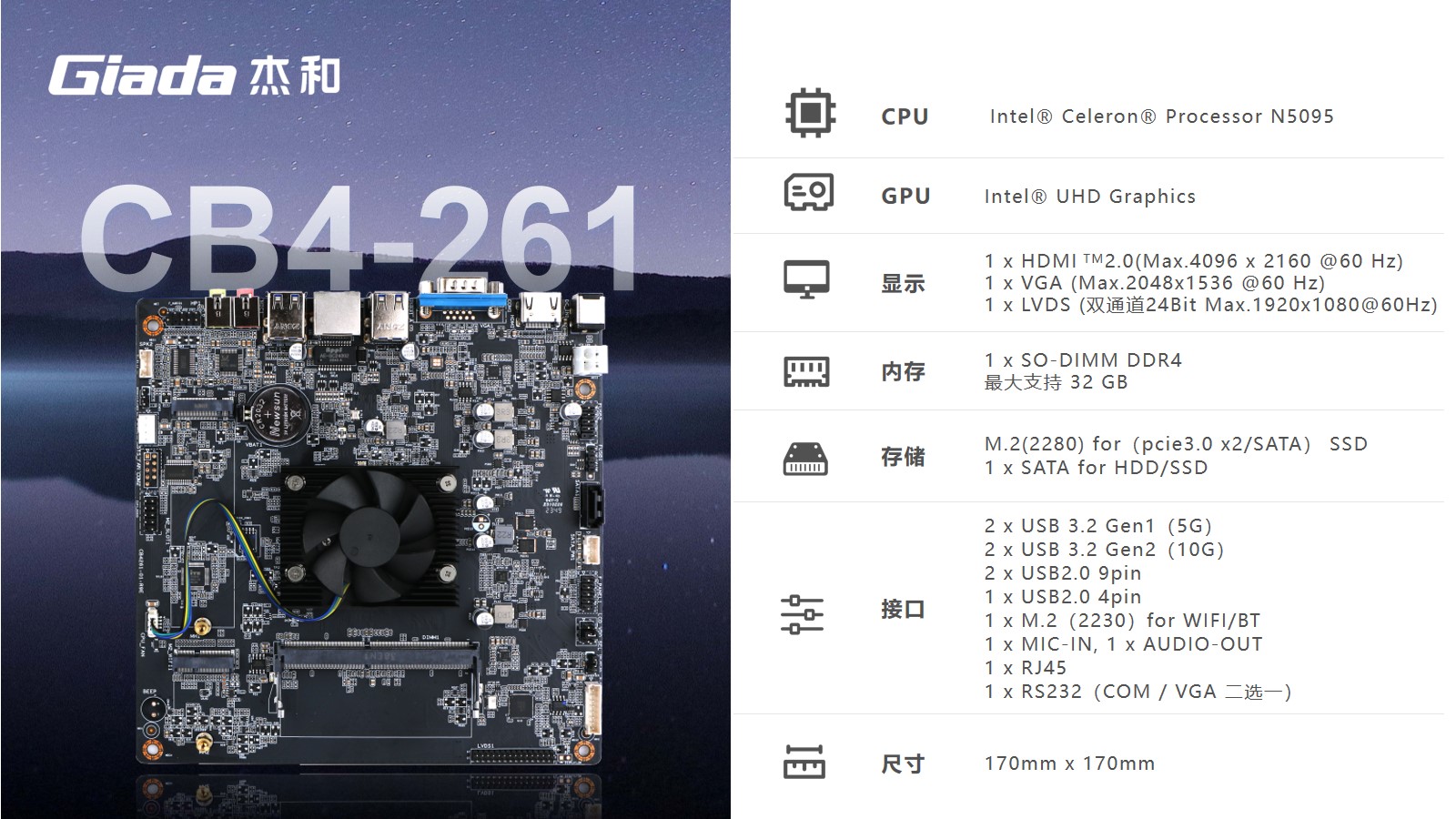 CA88(中国)科技CB4-261尺寸仅有170x170mm,小而精巧。搭载N5095芯片,该芯片采用10nm制程技术,四核心设计,支持Windows 、Linux系统,可满足多种终端机应用场景的需求,如信息查询、基本数据处理等。