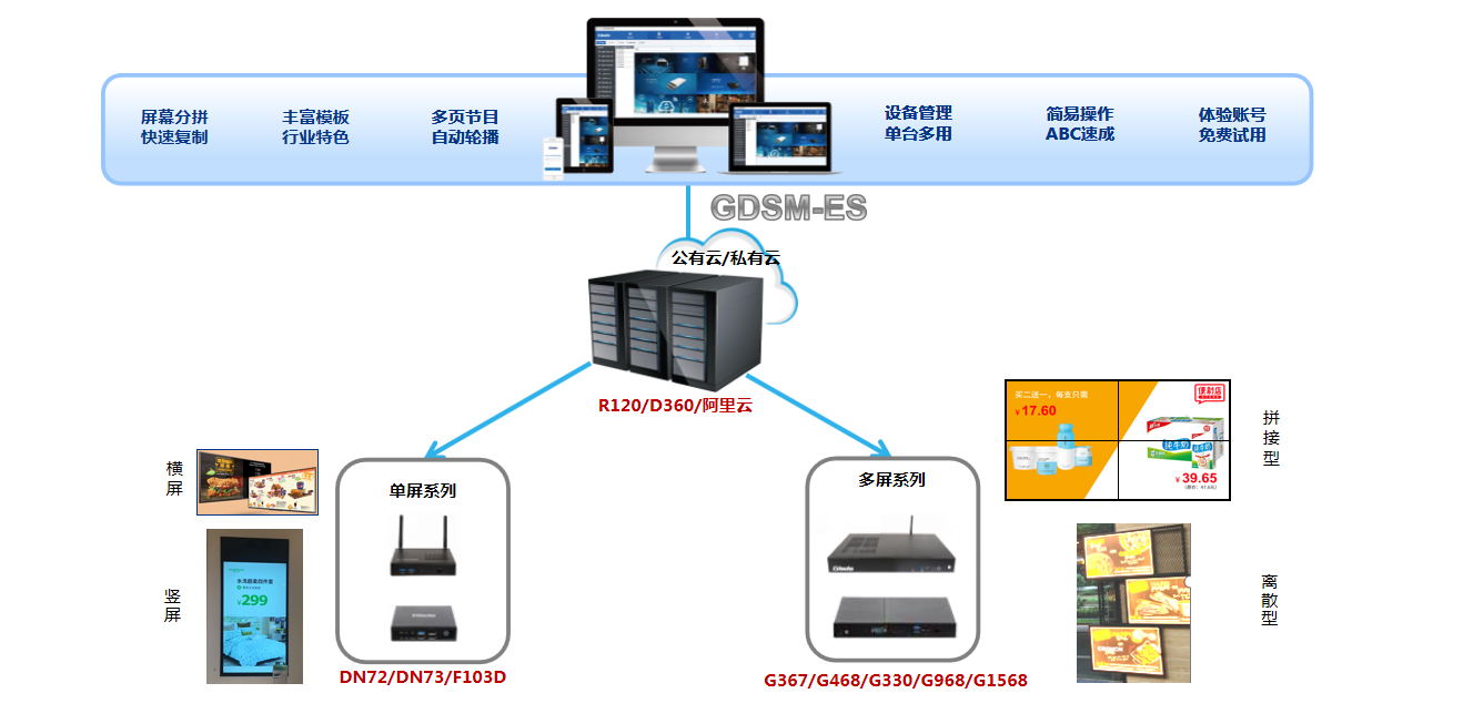 除了提供软件,CA88(中国)科技还可提供与该系统适配的媒体播放器,从商用级到工业级,从2k分辨率到4K分辨率,从多屏拼接墙到单屏点餐牌,从外挂播放器到可插拔模块,品类齐全。