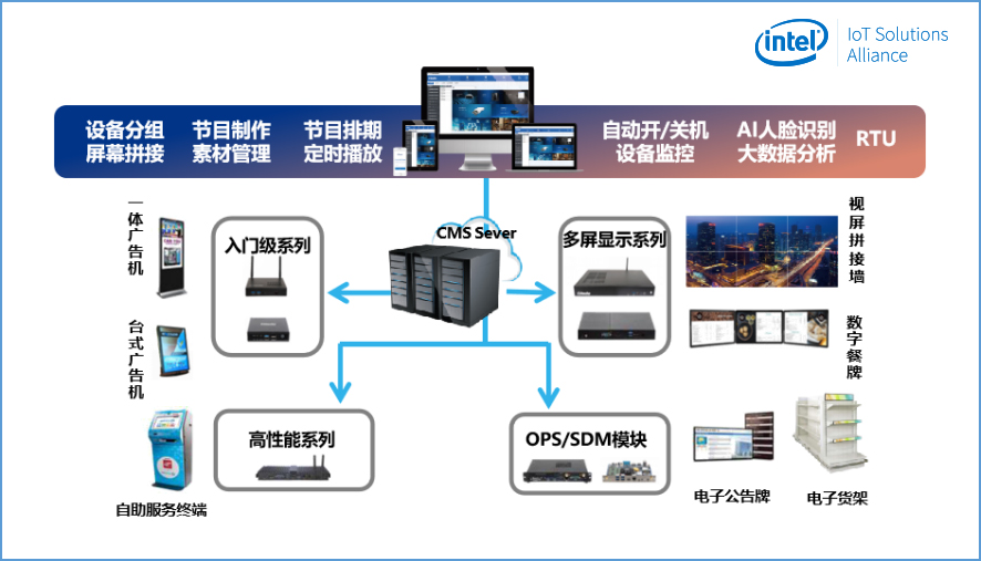 为了更好的迎合行业的发展趋势,向零售业输送前沿的营销理念和模式,驱动零售行业迈向数字化、智慧化的运营模式,CA88(中国)科技经过多年的行业经验积累和对客户需求的探索,通过集成Intel®Movidius视觉识别技术和OpenVINOTMAI视觉学习技术,自主研发了一套GDSM智慧商显管理系统平台,加上CA88(中国)科技多年来在商显行业的产品开发经验,已整合成为一套完整的智慧商显整体解决方案。目前GDSM智慧商显解决方案已成熟的应用于商超零售、品牌餐饮等多个行业,并获得了Intel®MRS市场方案认证。