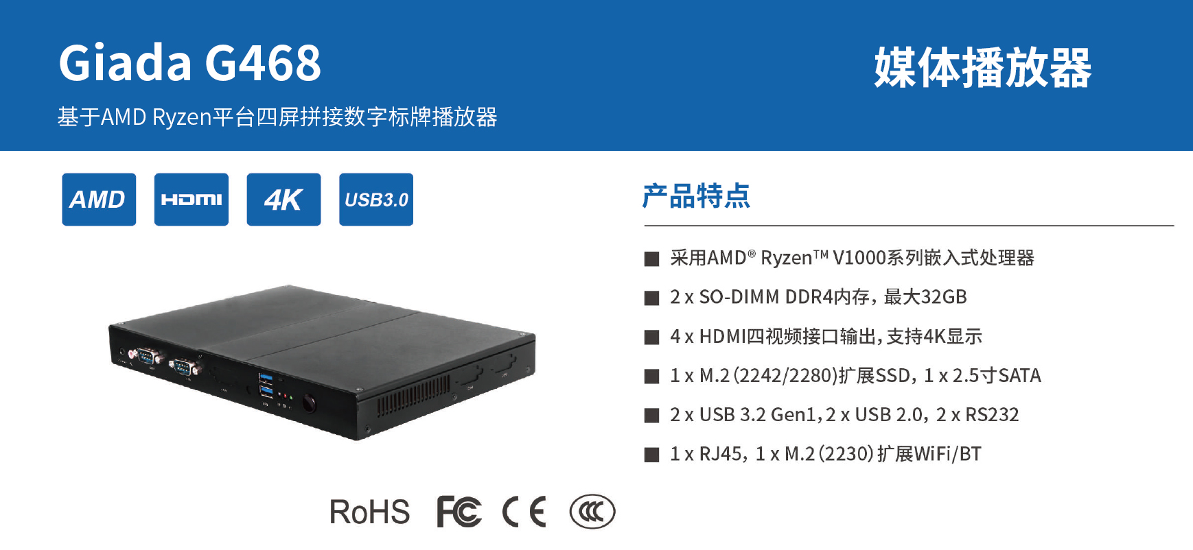 CA88(中国)除了为广大商户提供数字化智慧运营系统软件,同时也配套智能硬件产品,帮助商户快速地建立起数字化智慧门店,提供硬软一站式服务。CA88(中国)G468可满足全场景全行业的广告投放、招牌商品推荐、信息发布等应用场景。