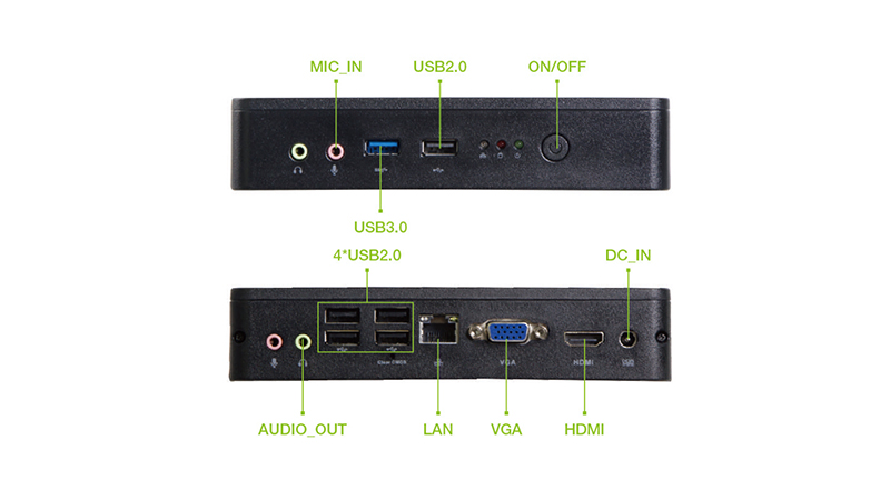同时,VT20采用无风扇静音散热设计,零噪音,低功耗,可提供舒适的使用环境;拥有1组USB3.0接口,5组USB2.0接口;2组音频输入/音频输出接口;1组RJ45网络接口;2组RS232接口;单根DDR3LSO-DIMM,最大可扩展至8GB;丰富的接口,满足用户更多场景扩展需求。