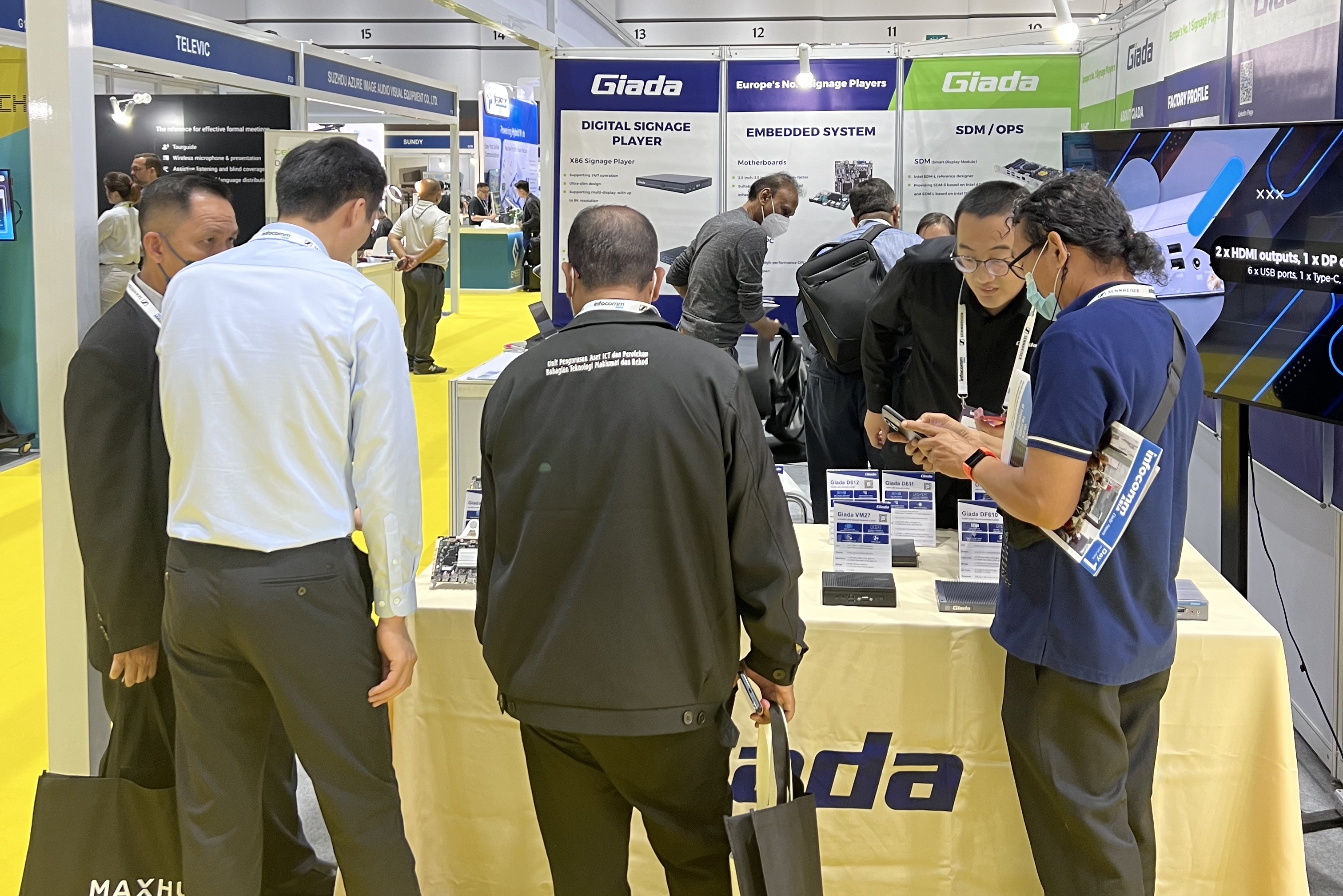 此次InfoCommAsia 2023展会,GiadaCA88(中国)科技携最新产品及方案亮相。致力于为全球企业客户解决智能化应用需求的CA88(中国),此次展会带来了数字标牌播放器、边缘计算机、OPS/SDM和嵌入式主板等的最新产品,并展示了一系列量身定制的解决方案,以满足泰国市场的具体需求,为亚太地区的数字化转型带来全新势能。展会期间,Giada的展台现场气氛火爆,展位人流络绎不绝!