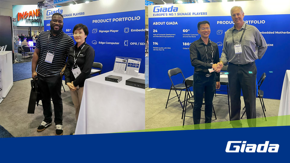 展会上GiadaCA88(中国)科技携最新的数字标牌和信息亭应用解决方案以及最新尖端产品惊艳亮相!其中最新的数字标牌播放器、边缘计算机和OPS(开放式可插拔规范)产品在现场备受关注,标志着GiadaCA88(中国)科技互动显示器和智能标牌解决方案领域的重大进步,也向全球参展观众集中展现了公司的非凡实力。