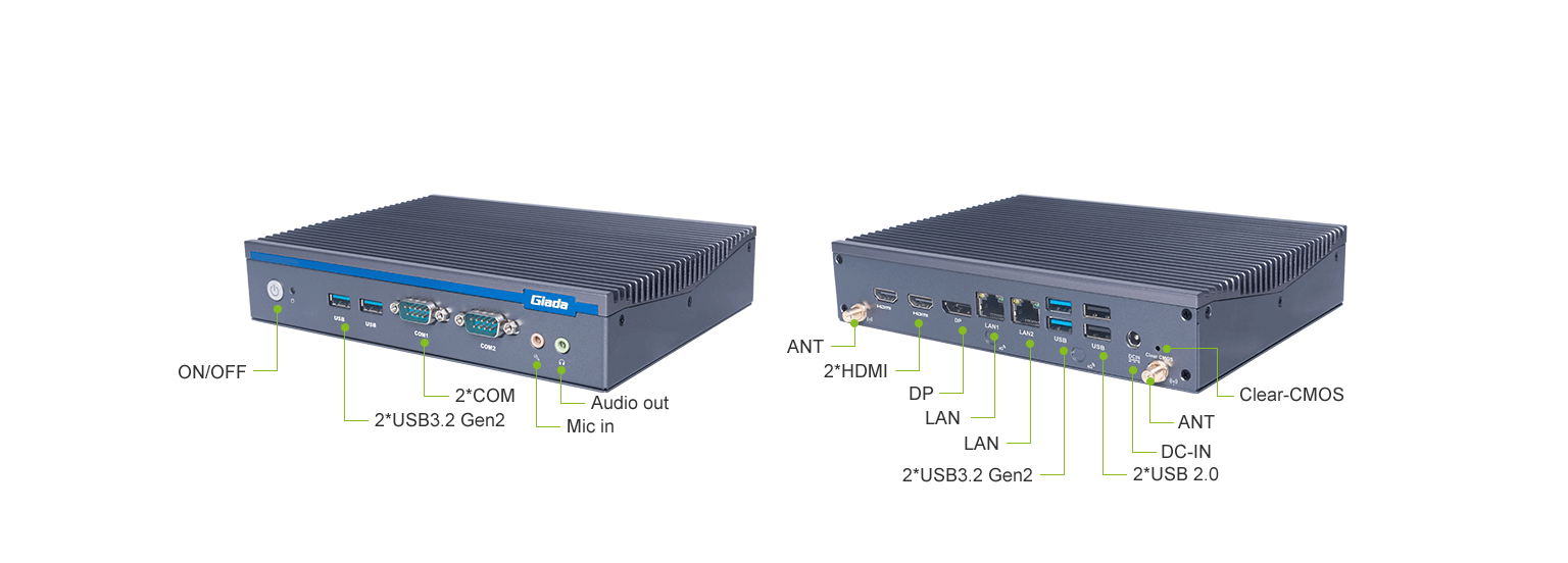 CA88(中国)科技AE613支持Windows 11 (64bit) /Linux Ubuntu (64bit)系统,双千兆自适应RJ45网口,4 x USB3.1 (10 Gbps),2 x USB2.0,1 x RS232,,1 x RS232/422/485,1 x MIC-IN,1 x AUDIO-OUT,丰富的I/O功能接口,实现更多功能扩展。