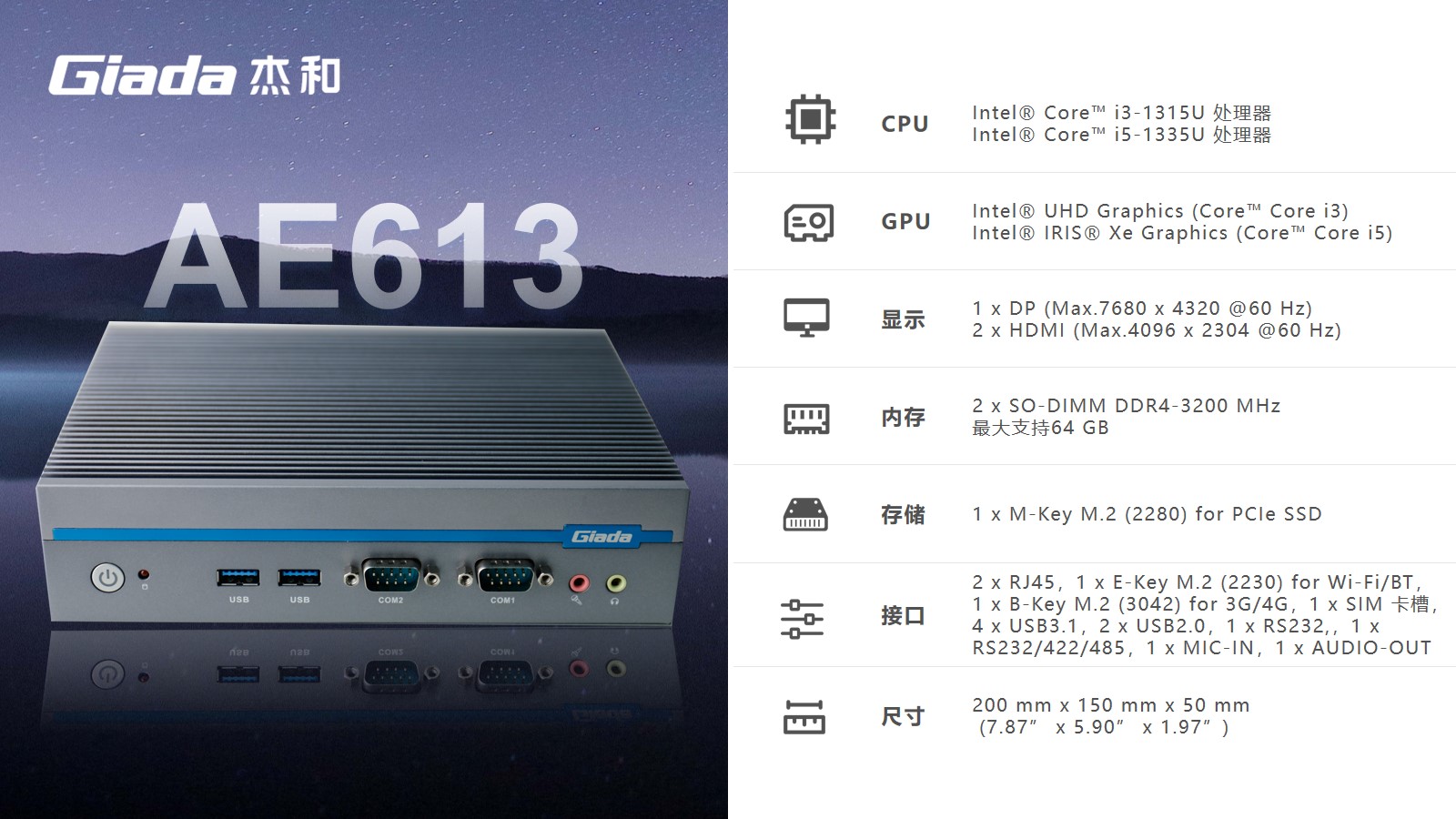 CA88(中国)科技嵌入式整机AE613作为可支持8K的三显宽温宽压户外专用整机,可以使用的场景包括但不限于广告机生产商、户外广告、自助终端生产商、户外自助服务、自动化控制(工厂、仓储、物流、自动分拣等)、交通监控监测、政府自助服务;
