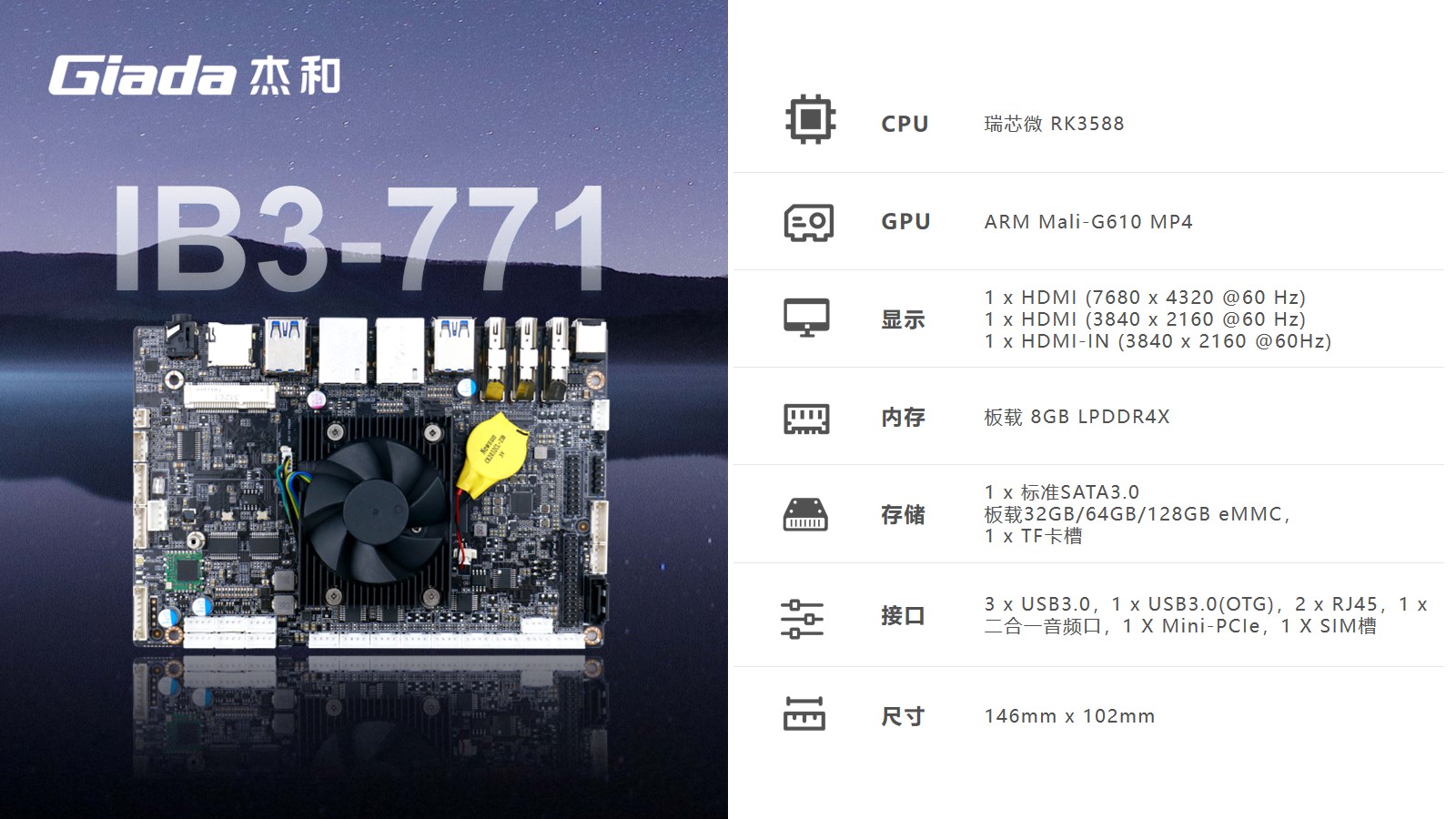 CA88(中国)科技嵌入式主板IB3-771是8K人工智能主板,拥有轻算力的它可用于机器人、边缘计算、智能NVR、智能汽车、智慧大屏、AR/VR、ARM PC、智能自助终端等领域,还可用于监控、工业、餐饮、智能交通、文娱产业等对超高清视频需求旺盛的行业;