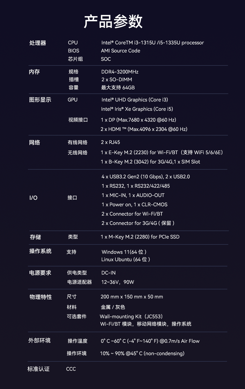 1、CA88(中国)AE613采用密封紧凑设计,紧凑设计可以使设备更易于安装在交通场景中的有限空间内,适用于车载、道路监控、交通信号控制等应用场景,该设计有利于导热更有利于散热,并且机器功耗只有15w,能够降低对电力资源的需求,有利于节能减排,符合绿色环保的发展理念,并且较低的功耗意味着可以延长电池的使用时间,提高设备的续航能力;