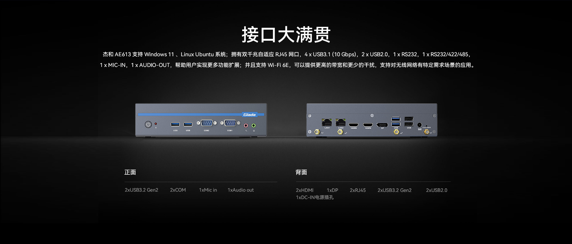 | 无线网络 | 1 x E-Key M.2 (2230) for WiFi/BT(支持Wifi5/6/6E) 1 x B-Key M.2(3042) for 3G/4G,1 x SIM卡槽 1x SIM Slot | |
