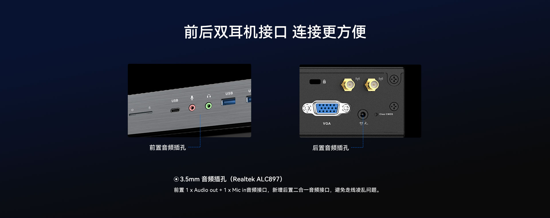 1 x Audio out,1 x Mic in,1 x 二合一音频口