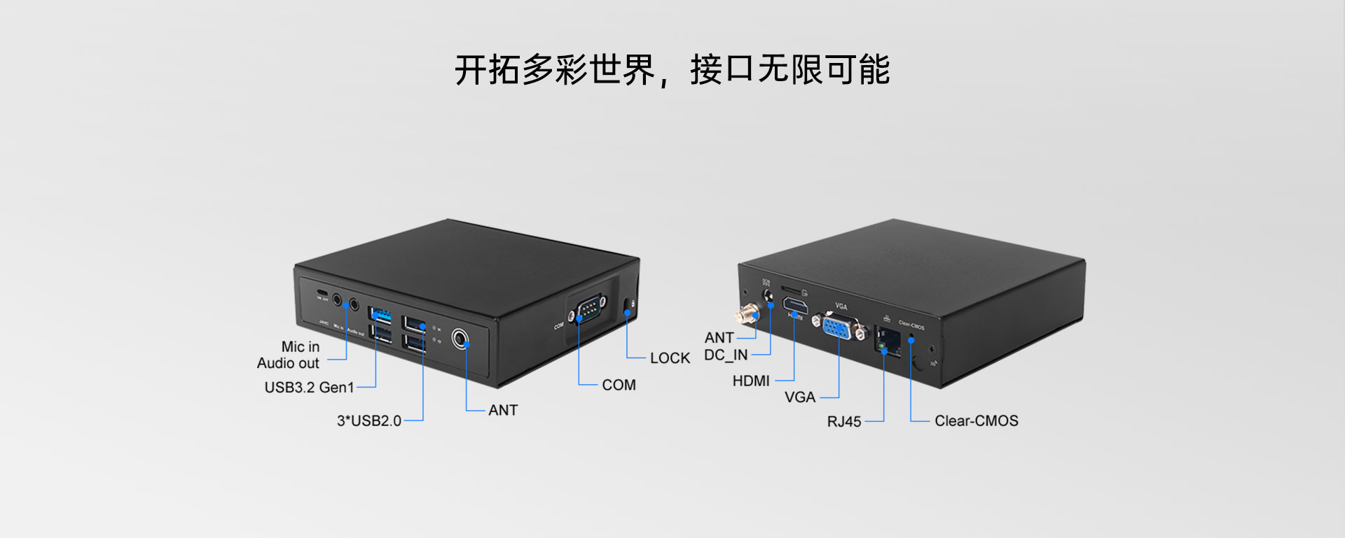 支持1x RJ45,1x 全高Mini-PCIe扩展WiFi/BT/3G,1x SIM卡槽