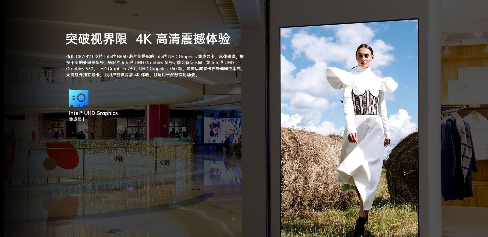 1 x HDMI +1 x LVDS+1 x VGA,支持4K视频输出